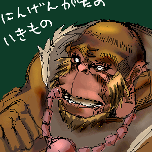 いちおうお猿さんということなんですが、本物のお猿さんには白目がないのでお猿さんでもないことになります(後で気づいた)